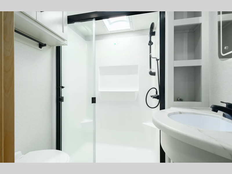 They are created with the perfect balance of size, space, features, and luxury. The automatic electric level up system will make setting up easier and the underbelly armor will protect your unit from road debris. The models come with two 15k BTU A/C units, heated holding tanks, hitch light, and many more convenient camping features.