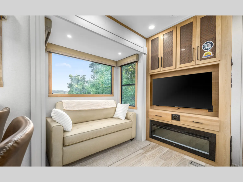 Sleeps 7 Slides 5 Int Height 7 ft Furnace BTU 40000 btu Number Of Bunks 3 Available Beds King Refrigerator Type 12V Refrigerator Size 16 cu ft Cooktop Burners 3 Number of Awnings 1 Axle Weight 7000 lbs LP Tank Capacity 30 Lbs. Water Heater Type On Demand Tankless AC BTU 30000 btu TV Info 50" LR Smart TV Awning Info 15' Electric awning with LED light strip Axle Count 2 Number of LP Tanks 2 Shower Type Standard Electrical Service 65 amp Similar Floorplans