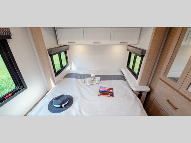 Sleeps 5 Slides 1 Length 24 ft 7 in Ext Width 8 ft 3 in Ext Height 11 ft Int Height 7 ft Interior Color Nantucket Blue ll, Sunlit Silver Exterior Color Standard Graphics Hitch Weight 8000 lbs GVWR 12300 lbs Fresh Water Capacity 40 gals Grey Water Capacity 35 gals Black Water Capacity 30 gals Furnace BTU 19000 btu Generator 4.0 kW Gas Dual Gas/LP Fuel Type Gas Engine 6.6L V8 Chassis Chevrolet Horsepower 401 hp Fuel Capacity 57 gals Wheelbase 159 in Number Of Bunks 1 Available Beds RV Queen Torque 464 ft-lb Refrigerator Type 12V Convection Cooking Yes Cooktop Burners 2 Shower Size 24" x 36" Number of Awnings 1 LP Tank Capacity 40.9 lbs Water Heater Type Tankless AC BTU 13500 btu Basement Storage 30.9 cu. ft. TV Info Cab 32" Smart TV Awning Info 15' Power w/Integrated LED Lighting Gross Combined Weight 16000 lbs Shower Type Standard Electrical Service 30 amp Similar Floorplans